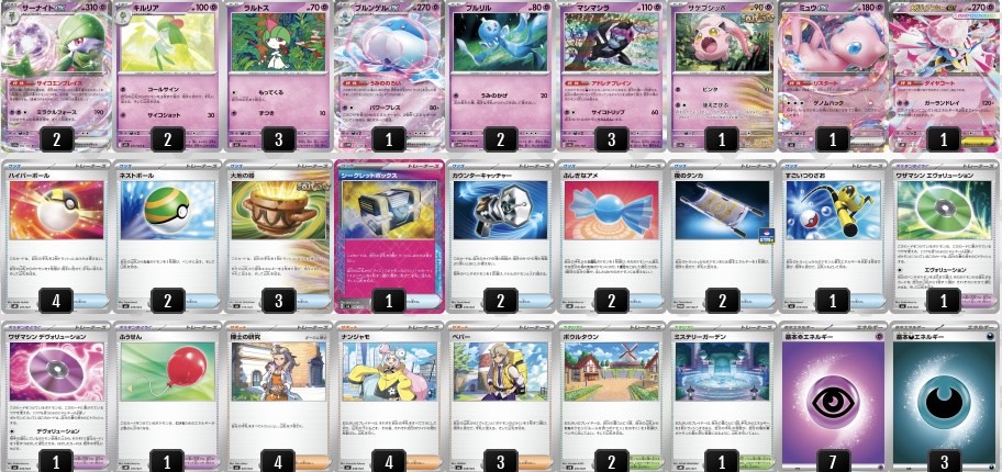 「サーナイトex」の特性「サイコエンブレイス」により、様々なサブアタッカーを選択できる為、環境に合わせ常にデッキの型を変え活躍し続けています。